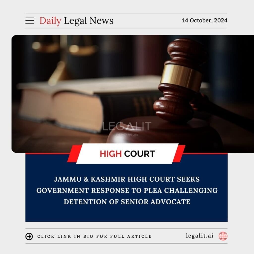 The Jammu and Kashmir High Court has recently issued a notice to the government, seeking its response to a petition challenging the detention of a senior advocate. The plea, filed by the detained advocate’s family, questions the legality of the detention under the Jammu and Kashmir Public Safety Act (PSA). This case has drawn attention due to concerns over the use of preventive detention laws and their impact on individual freedoms in the region.