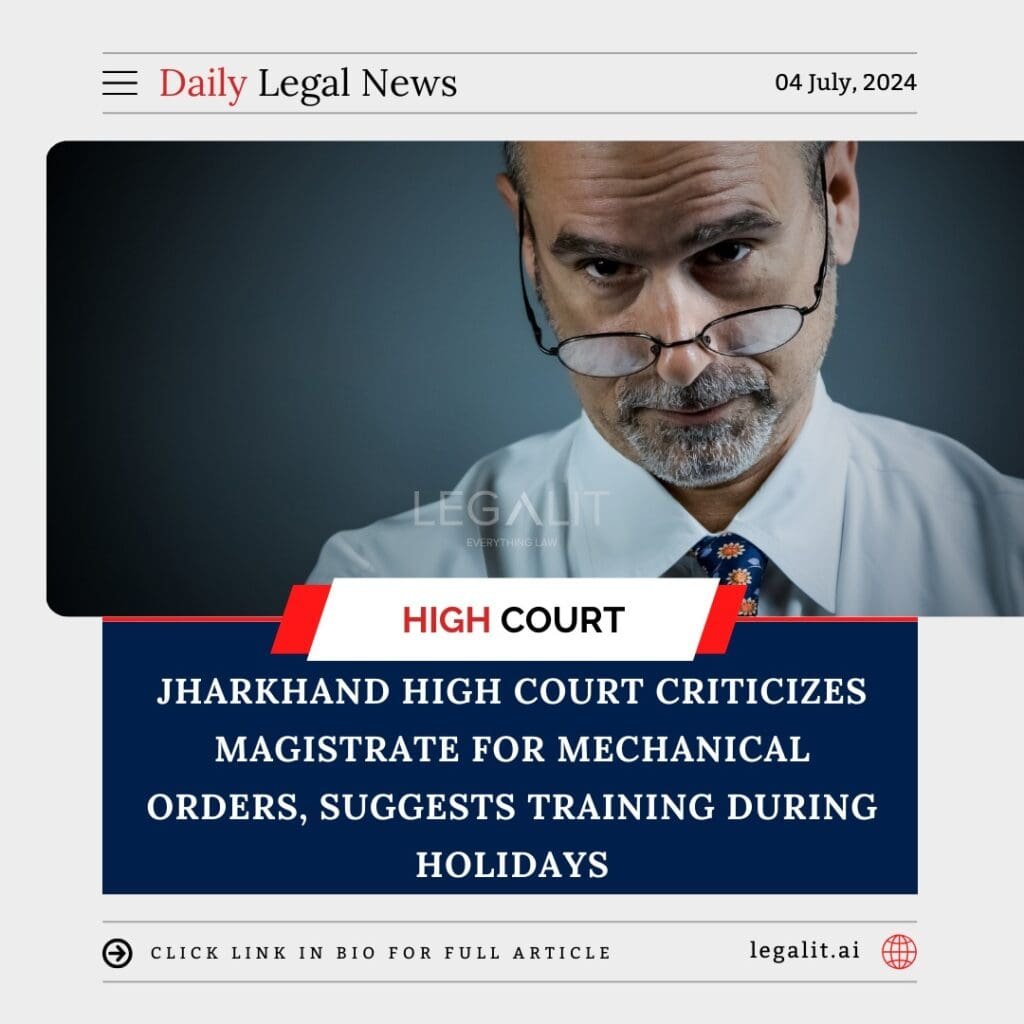 The Jharkhand High Court has criticized a magistrate for passing orders in a mechanical manner without proper judicial scrutiny. This reprimand came during the review of several cases where the court found that the magistrate had not applied judicial mind and had instead issued orders routinely, affecting the course of justice.