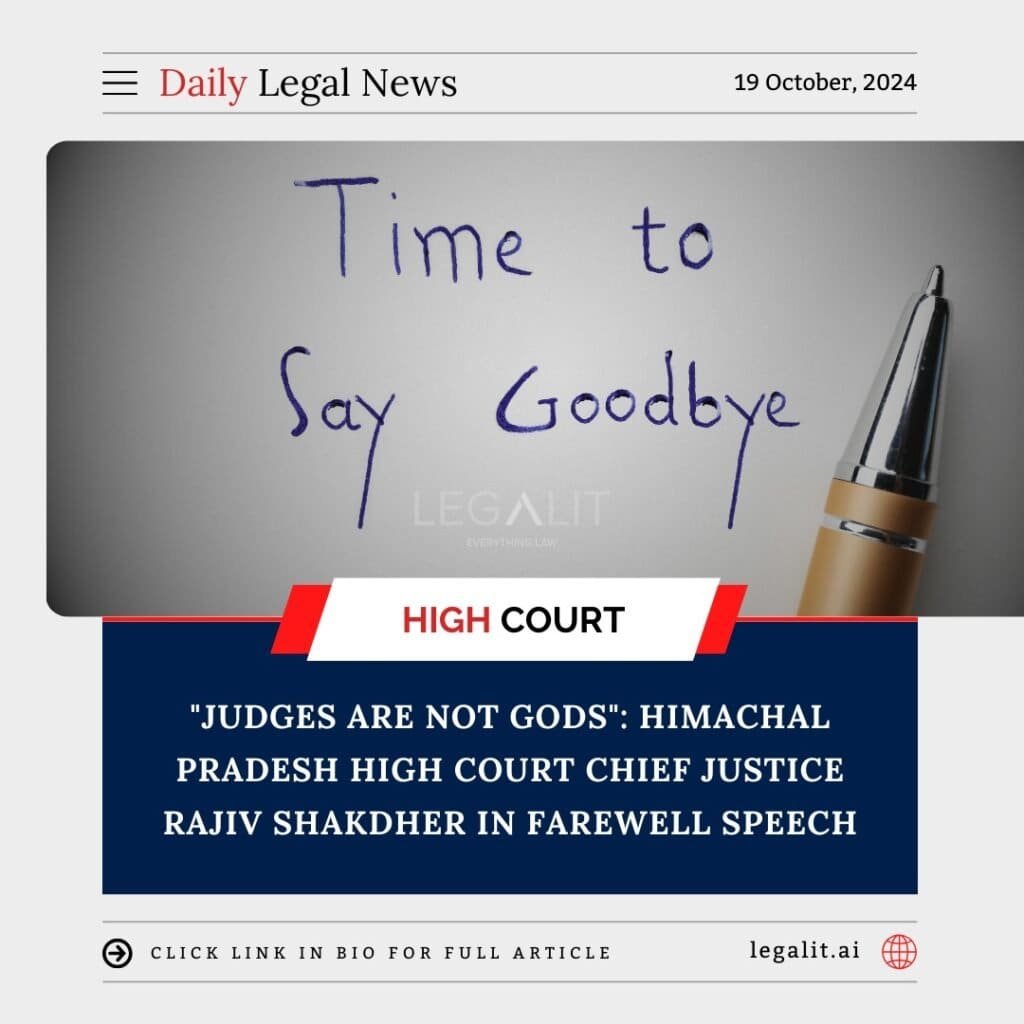 In a candid and heartfelt farewell address, Chief Justice Rajiv Shakdher of the Himachal Pradesh High Court emphasized the human side of the judiciary, stating, “Judges are not Gods.” His speech touched upon the limitations, challenges, and responsibilities that come with serving in a judicial role, offering a refreshing perspective on the perception of judges in society.
