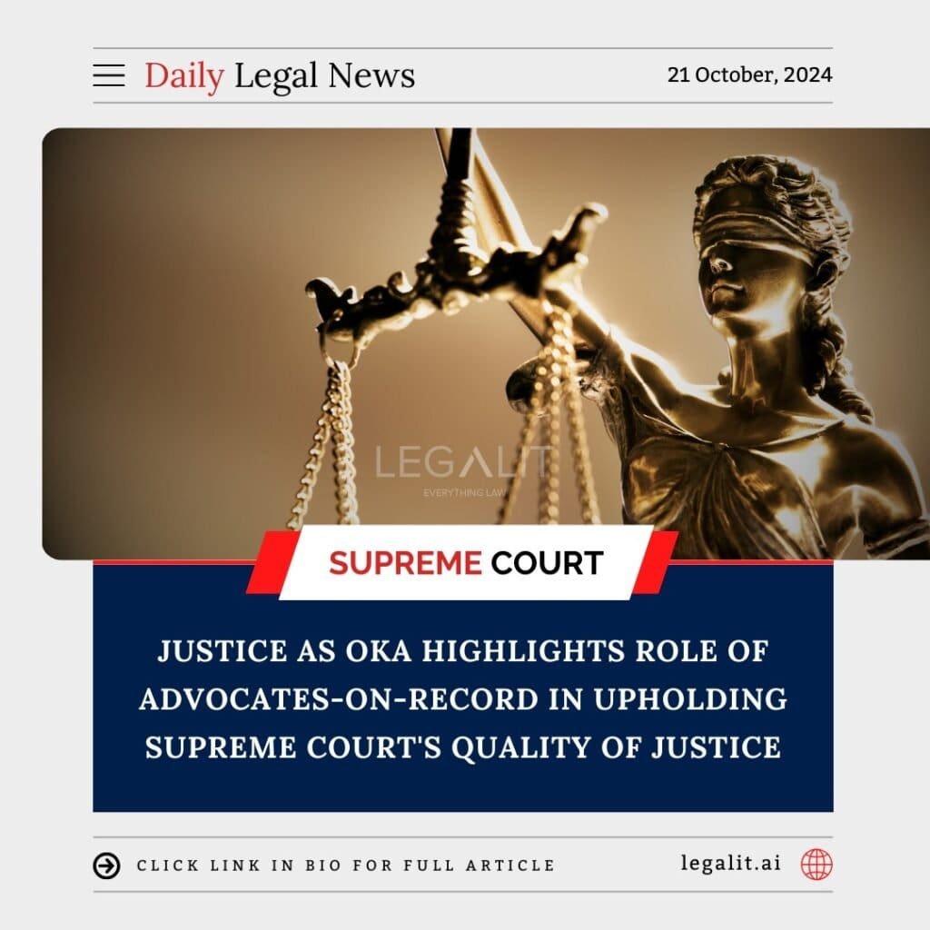Justice AS Oka of the Supreme Court of India has emphasized that the quality of justice delivered by the apex court is directly linked to the caliber of its Advocates-on-Record (AoRs). His remarks underline the critical role played by these legal professionals, who are responsible for the preparation, filing, and management of cases before the Supreme Court.