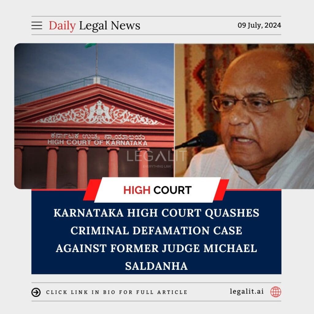 The Karnataka High Court has quashed a criminal defamation case against former judge Michael Saldanha. This case, which had drawn significant attention, centered around allegations made by Saldanha against several prominent individuals and entities.