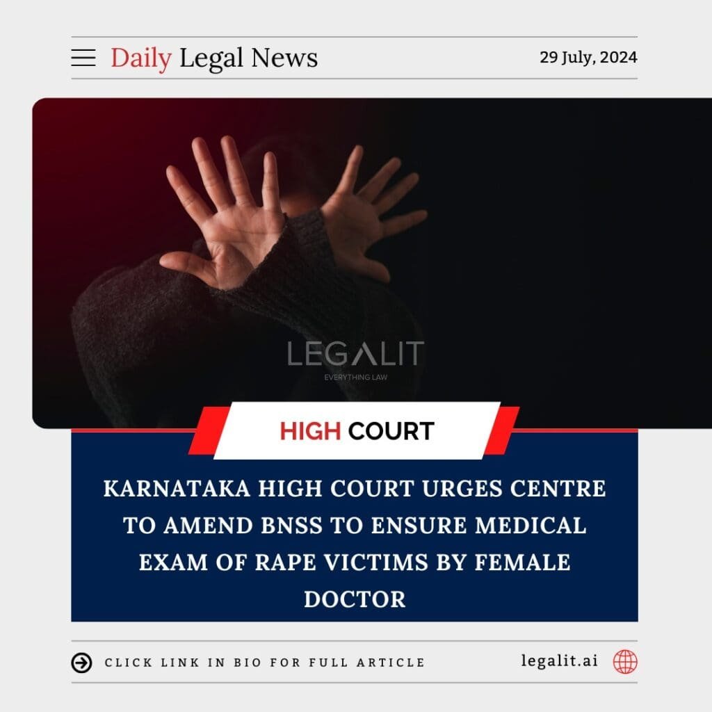 In a significant and progressive move, the Karnataka High Court has urged the central government to amend the guidelines under the Best Practices for Medical Examination and Care of Survivors of Sexual Assault (BNSS) to ensure that the medical examination of rape victims is conducted by a female doctor. This recommendation aims to make the medical examination process more sensitive and comfortable for survivors of sexual assault.