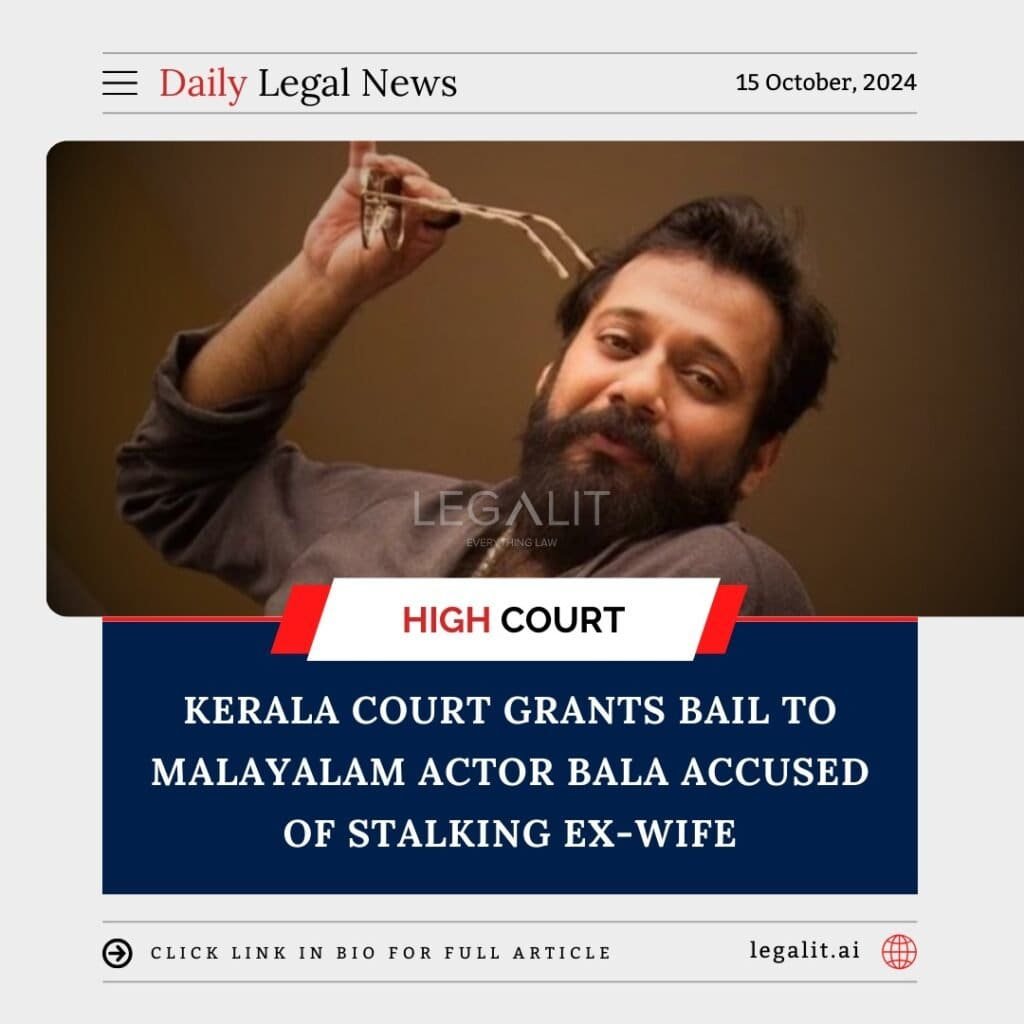 In a recent development, the Kerala Court has granted bail to Malayalam actor Bala, who faced allegations of stalking his ex-wife. The court’s decision comes after the actor sought relief, arguing that the accusations were unfounded and that he posed no threat to the complainant.