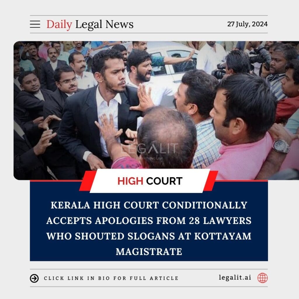 In a notable judicial decision, the Kerala High Court has conditionally accepted the apologies of 28 lawyers who were involved in shouting slogans at a magistrate in Kottayam. This incident, which brought attention to the decorum and conduct expected in judicial proceedings, underscores the balance between maintaining court dignity and addressing grievances of legal professionals.