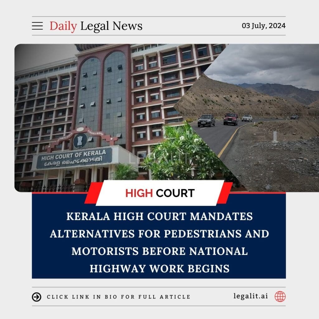 The Kerala High Court has mandated that state authorities must ensure alternative routes and safety measures for pedestrians and motorists before commencing any construction work on national highways. This directive aims to minimize the disruption and risks associated with such extensive infrastructural projects, ensuring that the public’s safety and convenience are not compromised.