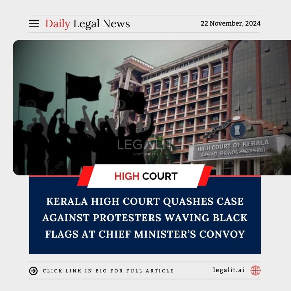 The Kerala High Court has quashed a case against three individuals accused of waving black flags at the convoy of Chief Minister Pinarayi Vijayan during a protest. The court ruled that peaceful demonstrations, including symbolic protests like waving black flags, are fundamental rights protected under the Constitution.