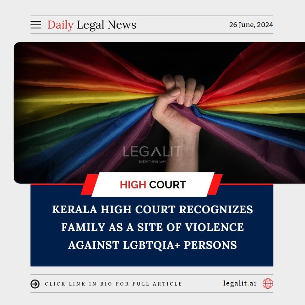 In a landmark judgment, the Kerala High Court has acknowledged that the family can be a site of violence against LGBTQIA+ individuals. This recognition is significant in the ongoing struggle for the rights and protection of LGBTQIA+ communities in India.