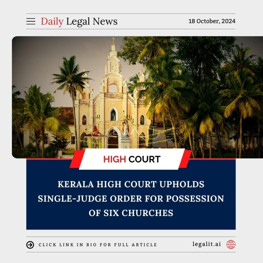The Kerala High Court has affirmed a previous ruling by a single judge to take possession of six churches, a decision that has significant implications for religious property disputes in the state. This ruling comes in the context of ongoing conflicts within various Christian denominations over church ownership and administration.