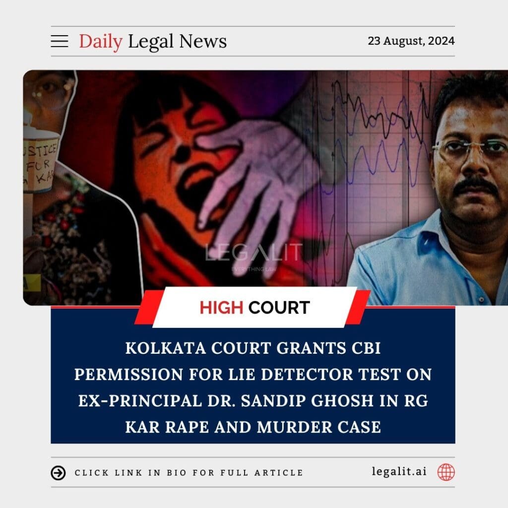 In a significant development in the ongoing investigation into the RG Kar Medical College rape and murder case, a Kolkata court has granted permission to the Central Bureau of Investigation (CBI) to conduct a lie detector test on the institution’s former principal, Dr. Sandip Ghosh. This ruling marks a critical step in the pursuit of justice in a case that has shocked the city and raised serious concerns about safety and accountability within educational institutions.