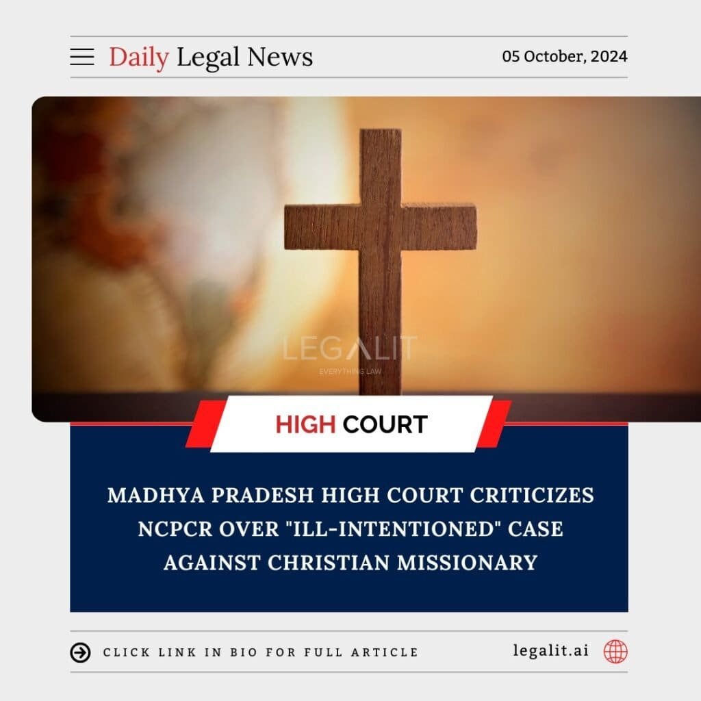 Madhya Pradesh High Court Criticizes NCPCR Over “Ill-Intentioned” Case Against Christian Missionary
