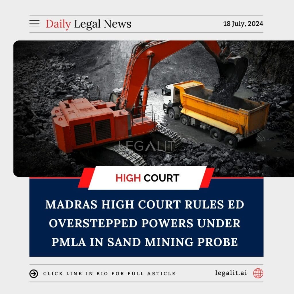 By curbing the ED’s actions, the Madras High Court has highlighted the need for precise and transparent legal processes, particularly in cases involving significant economic and environmental concerns like illegal sand mining. This decision is a reminder of the checks and balances within the judicial system to prevent misuse of investigative powers.