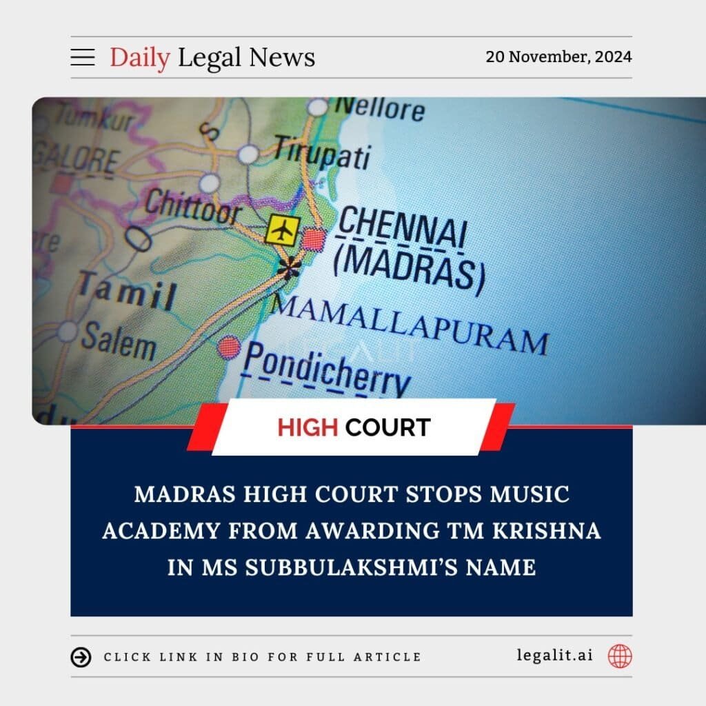 The Madras High Court has intervened to stop a music academy from giving an award in the name of legendary vocalist MS Subbulakshmi to artist TM Krishna. The court’s decision came after objections raised over the selection, which sparked controversy.