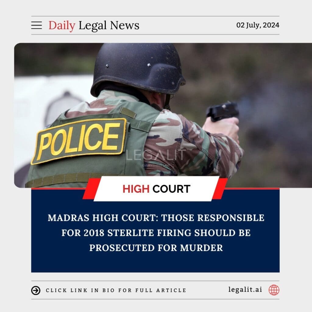 In a landmark ruling, the Madras High Court has declared that those responsible for the 2018 police firing at anti-Sterlite protesters in Thoothukudi should be prosecuted for murder. This decision underscores the severity of the incident, where police action resulted in the deaths of 18 unarmed protesters.