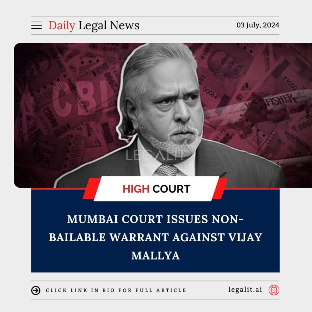 The Mumbai court has issued a non-bailable warrant against businessman Vijay Mallya in connection with the IDBI Bank loan default case. The Central Bureau of Investigation (CBI) sought this warrant as part of its efforts to extradite Mallya from the United Kingdom. Mallya, who fled India in March 2016, has been accused of financial misconduct and defaulting on loans amounting to Rs 9,000 crore, primarily related to his defunct Kingfisher Airlines.