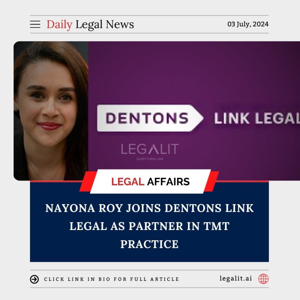 Nayona Roy has joined Dentons Link Legal as a partner in their Technology, Media, and Telecommunications (TMT) practice. Roy brings a wealth of experience from various sectors, including legal technology, media, and FMCG.