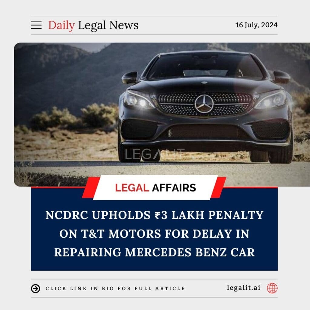 The National Consumer Disputes Redressal Commission (NCDRC) has upheld a penalty of ₹3 lakh imposed on T&T Motors for a four-month delay in repairing a Mercedes Benz car. This decision stems from a complaint lodged by the car owner, who faced significant inconvenience and mental agony due to the prolonged repair process.