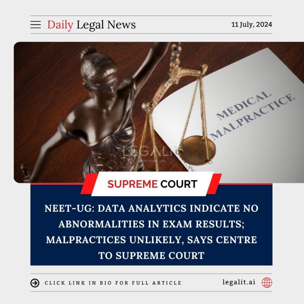 The Centre has informed the Supreme Court that data analytics have shown no abnormalities in the results of the National Eligibility cum Entrance Test-Undergraduate (NEET-UG) for the current year. This statement comes amid allegations of malpractices and demands for a review of the examination process.
