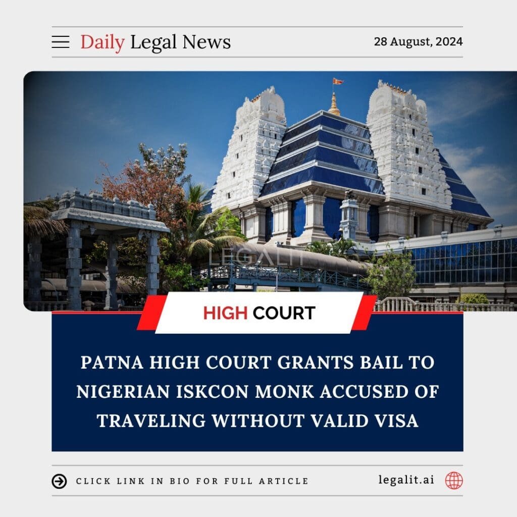 In a significant ruling, the Patna High Court has granted bail to a Nigerian monk associated with the International Society for Krishna Consciousness (ISKCON) who was accused of traveling in India without a valid visa. This case has drawn considerable attention due to its implications on international religious missions and the legal complexities surrounding visa regulations.