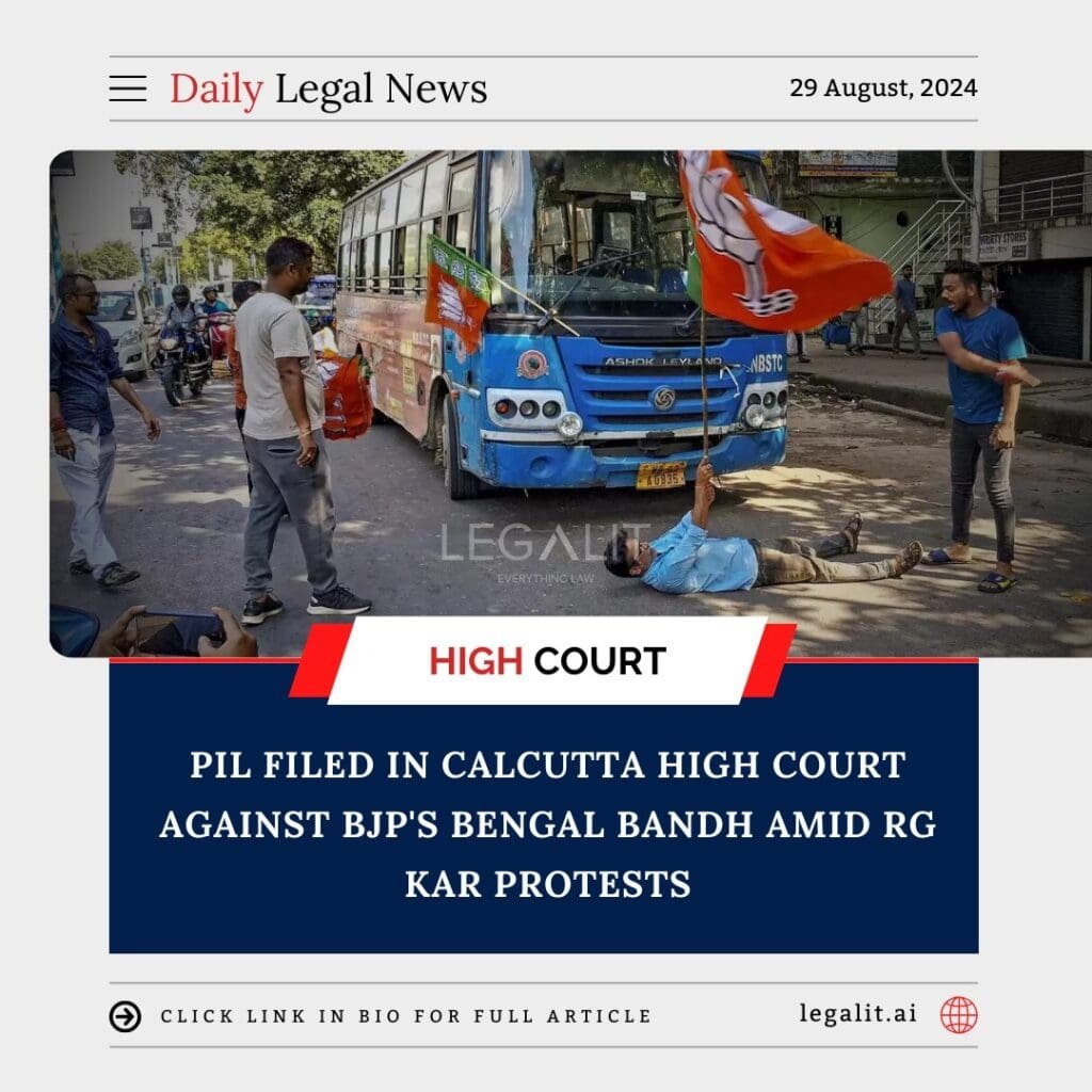 In response to the ongoing protests related to the RG Kar Hospital case, a Public Interest Litigation (PIL) has been filed before the Calcutta High Court challenging the Bharatiya Janata Party’s (BJP) call for a bandh in West Bengal. The bandh, which was organized in protest of the alleged mishandling of the RG Kar Hospital case, has sparked significant debate and legal scrutiny. The PIL seeks to address the implications of the bandh on public life and legal proceedings.