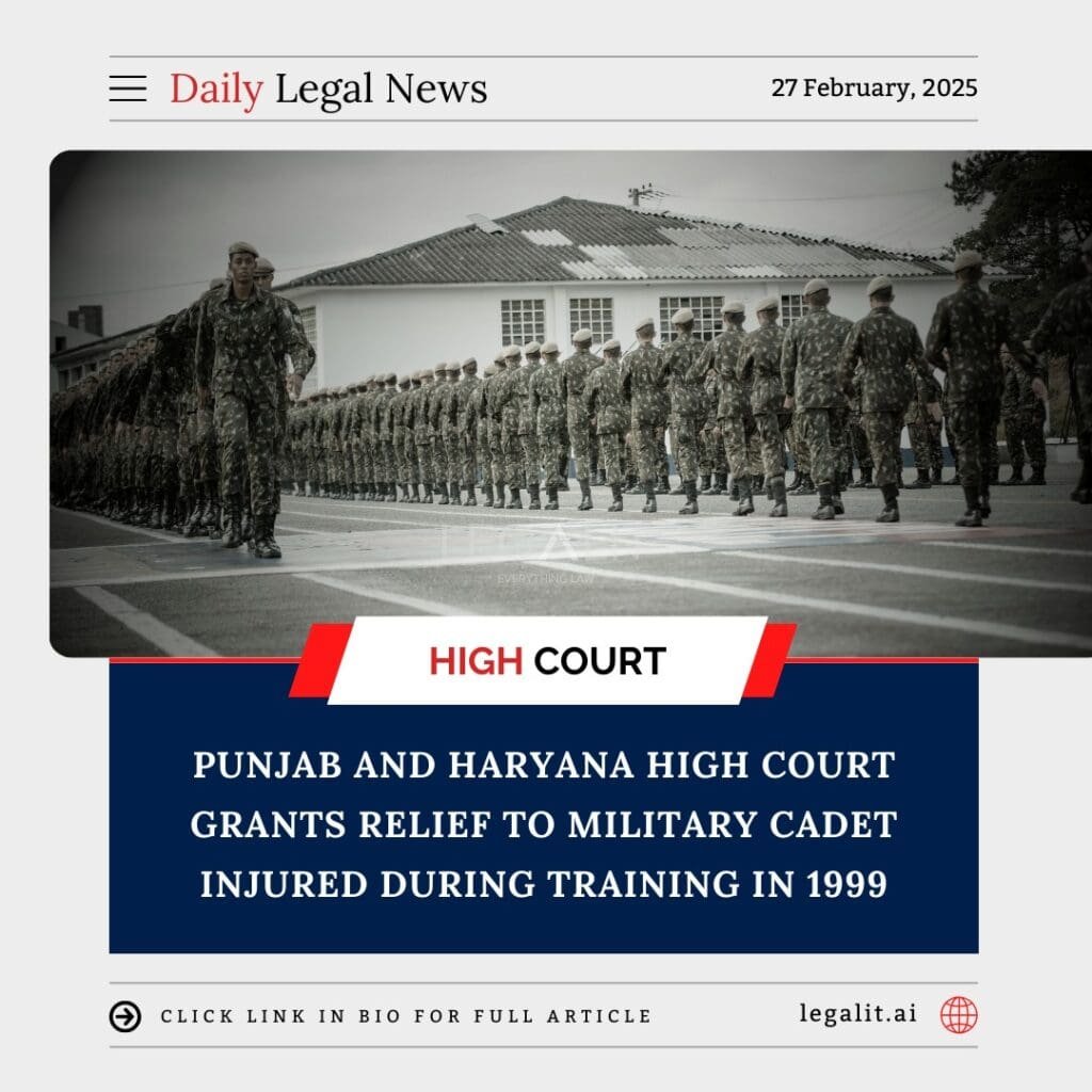 The Punjab and Haryana High Court has granted relief to a military cadet who sustained severe injuries during training in 1999. The petitioner had approached the court, seeking compensation and benefits, arguing that the injury suffered during official training had significantly impacted his career and quality of life.
