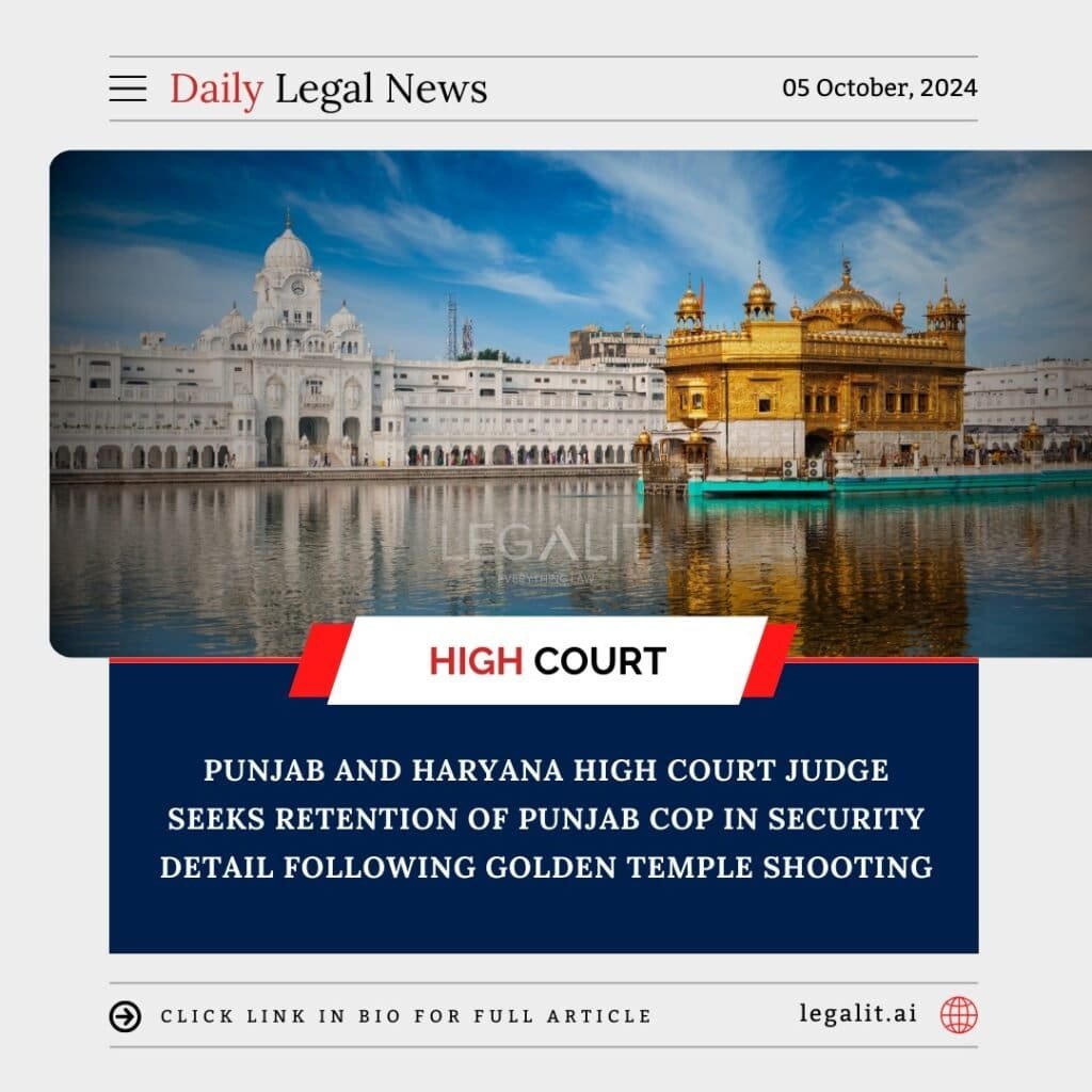 In a recent development, a judge from the Punjab and Haryana High Court has requested that a Punjab police officer remain part of his security team. This request comes in the wake of a tragic shooting incident at the Golden Temple, which has raised significant concerns about the safety of individuals, particularly those in prominent positions.