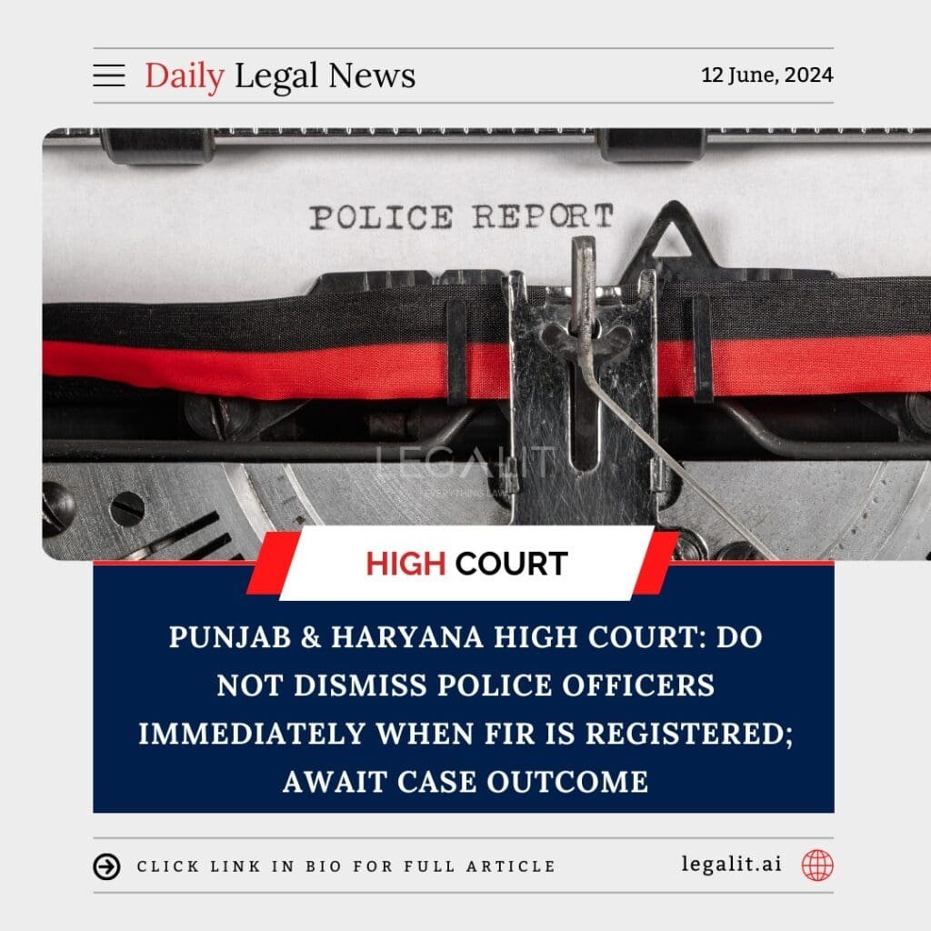 The Punjab & Haryana High Court has recently emphasized that the state government should avoid the immediate dismissal of police officers when an FIR (First Information Report) is registered against them. Instead, the outcome of the legal proceedings should be awaited before taking any such drastic action. This directive aims to ensure that police officers are not unjustly punished based on unproven allegations, preserving the principles of fair trial and justice.