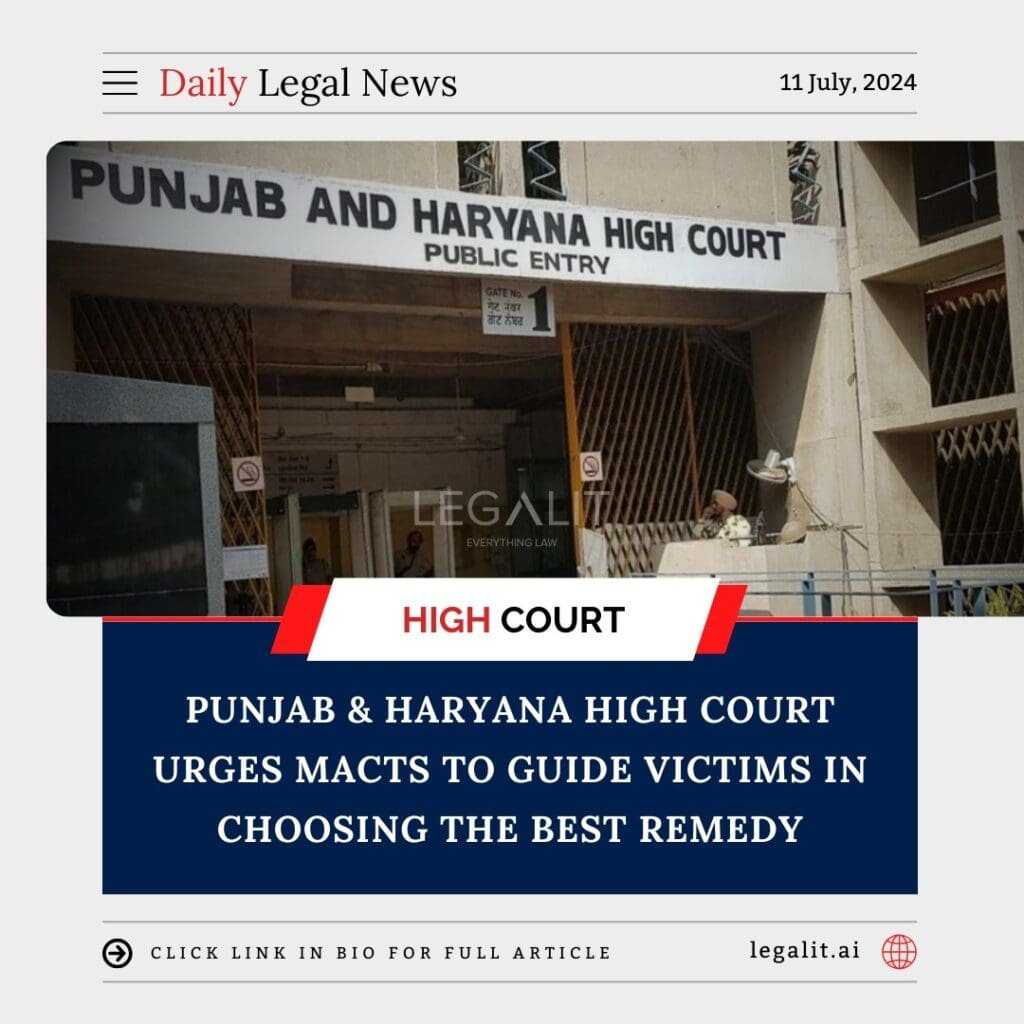The Punjab and Haryana High Court’s directive to MACTs to guide victims in choosing the best legal remedy under the Motor Vehicles Act represents a significant step towards ensuring justice and equity for accident victims. By providing clear and comprehensive guidance, the court aims to maximize compensation for victims and streamline the legal process.
