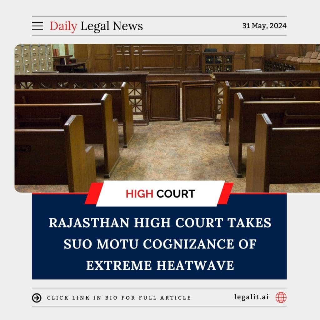 In a proactive measure addressing the severe impacts of the current heatwave, the Rajasthan High Court has taken suo motu cognizance of the situation. This move underscores the court’s commitment to addressing pressing environmental and public health issues exacerbated by extreme weather conditions.