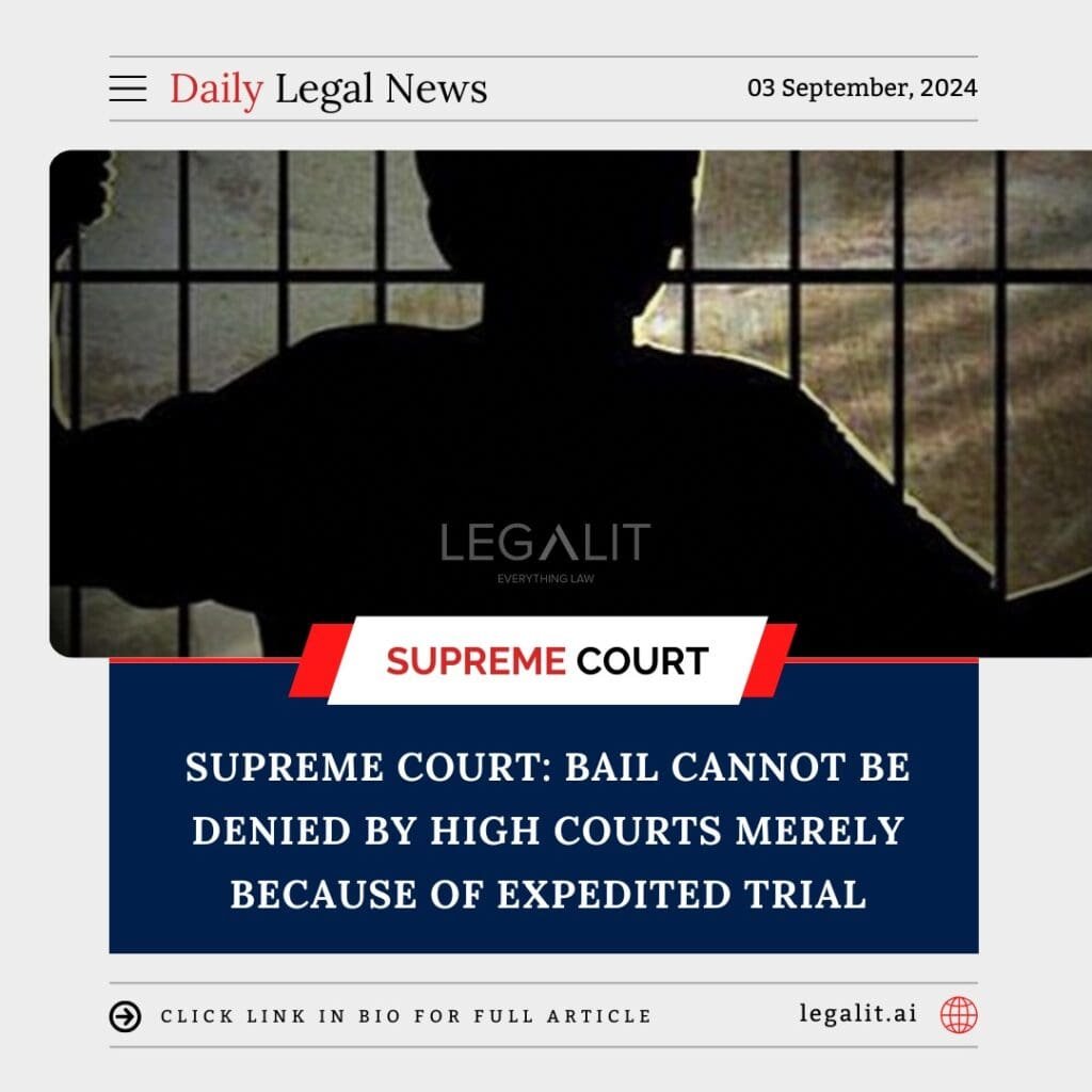 The Supreme Court of India has made a significant ruling that bail should not be denied by High Courts solely on the grounds that a trial is being expedited. The court emphasized that the right to bail is a fundamental aspect of personal liberty, and expediting a trial does not automatically justify the denial of bail to an accused person.