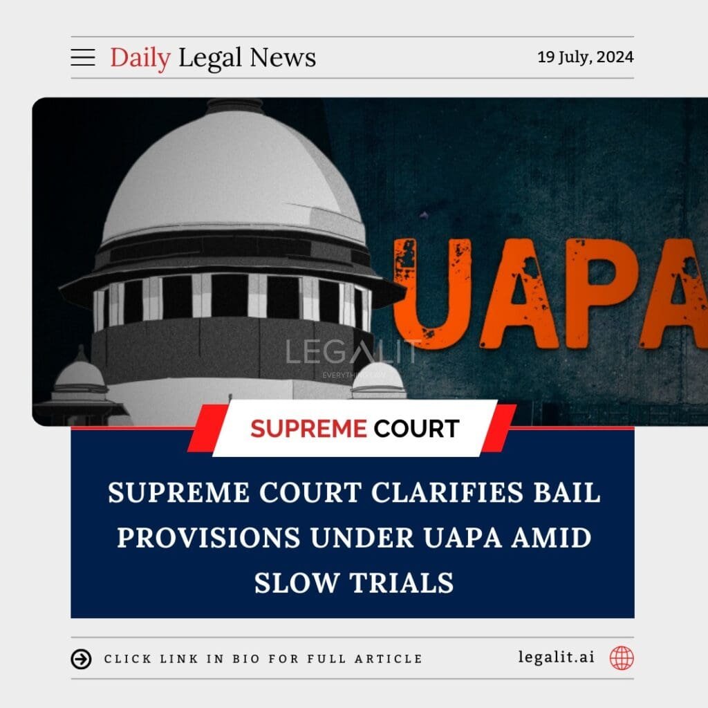 The Supreme Court of India has clarified that restrictive clauses under the Unlawful Activities (Prevention) Act (UAPA), particularly those established by the Watali judgment, do not entirely preclude courts from granting bail, especially in cases where trials are proceeding at an exceptionally slow pace. This decision aims to balance the need for national security with the protection of individual liberties and the right to a speedy trial.