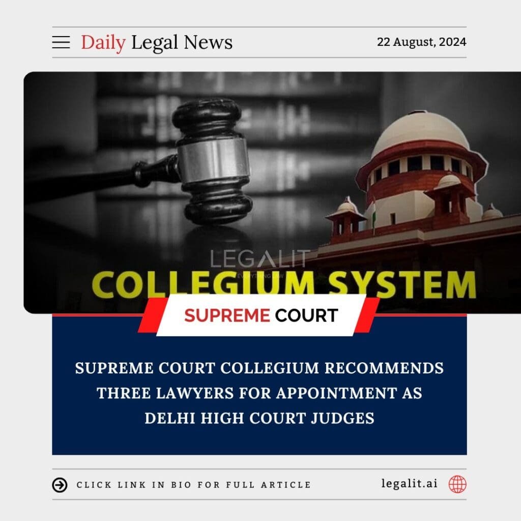 In a significant move for the Indian judiciary, the Supreme Court Collegium has recommended the appointment of three distinguished lawyers to the Delhi High Court. This recommendation is a crucial step in the ongoing effort to enhance the strength and efficiency of the judiciary, reflecting the Collegium’s commitment to bringing in experienced and competent legal professionals to the bench.