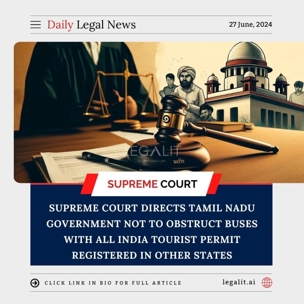 The Supreme Court has issued a directive to the Tamil Nadu government, instructing it not to obstruct buses that are registered in other states but possess an All India Tourist Permit. This decision aims to facilitate smoother interstate travel and uphold the rights granted under the permit system.