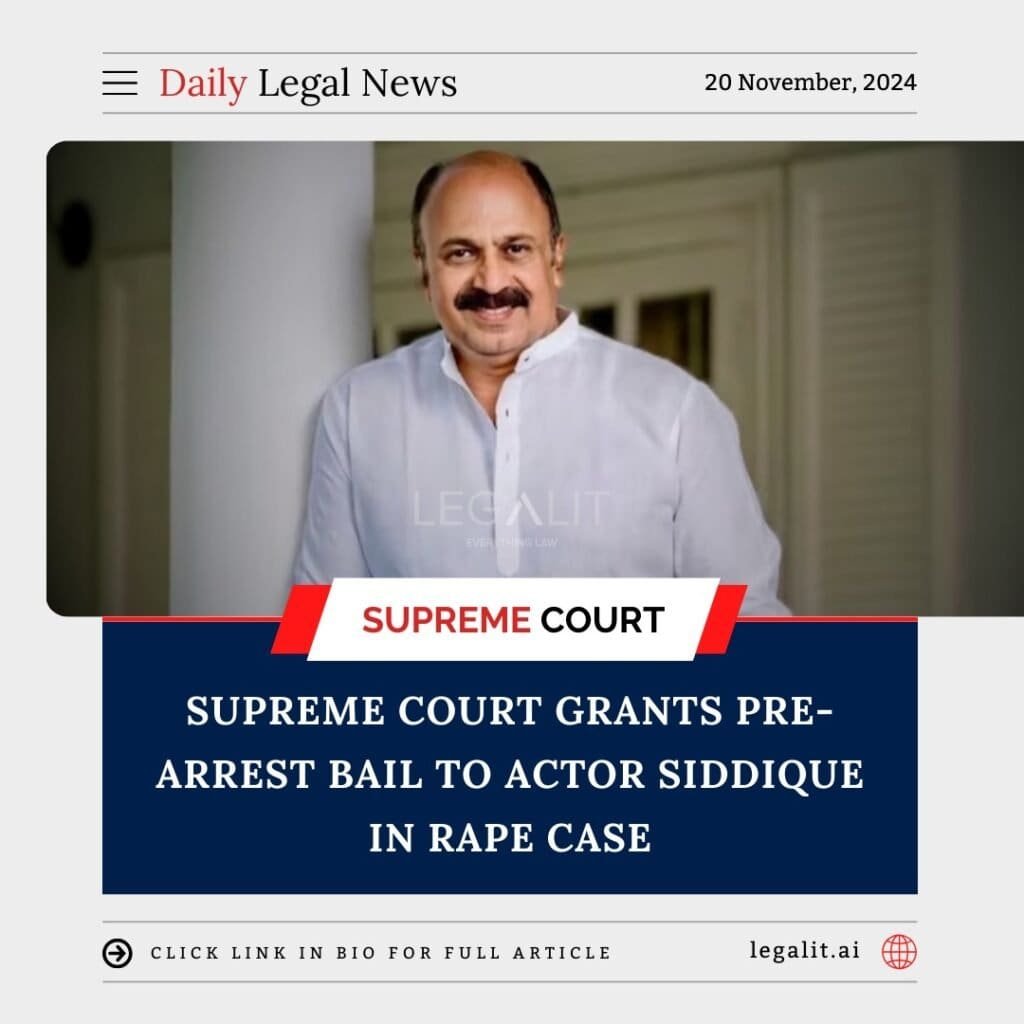 The case was registered in 2023 after a woman accused Siddique of raping her under the pretext of marriage. The actor, known for his prominent roles in the Malayalam film industry, denied the allegations and approached the Supreme Court after his anticipatory bail plea was rejected by the lower courts.