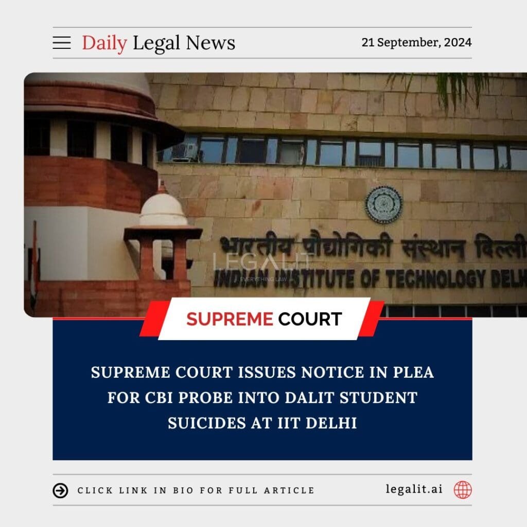 The Supreme Court of India has issued a notice regarding a plea seeking a Central Bureau of Investigation (CBI) probe into the tragic suicides of Dalit students at the Indian Institute of Technology (IIT) Delhi. This significant development highlights ongoing concerns about mental health, social justice, and the systemic issues faced by marginalized communities within educational institutions.