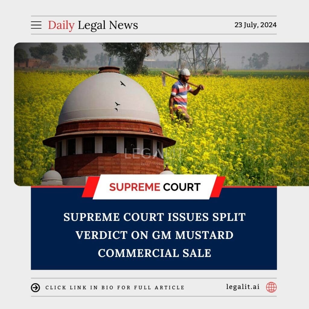 The Supreme Court of India delivered a split verdict on the commercial sale of genetically modified (GM) mustard, highlighting the contentious nature of GM crops in the country. The case, which has seen various environmental and public interest groups challenge the government’s decision to allow GM mustard cultivation, resulted in differing opinions among the justices involved.