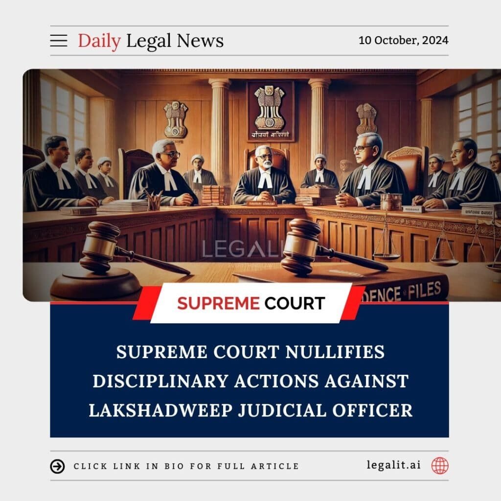 The Supreme Court recently quashed the disciplinary proceedings initiated against a judicial officer in Lakshadweep. The case came to the forefront due to the officer’s alleged misconduct, which was reportedly tied to their performance and the handling of certain legal matters in the Union Territory. The disciplinary actions had raised questions regarding the fairness and transparency of the procedures employed against the officer.