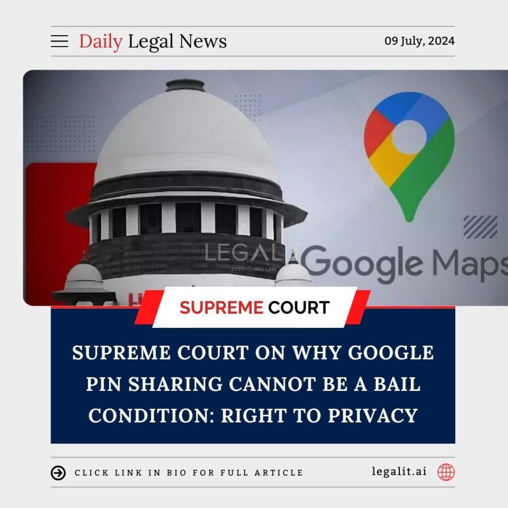 In a landmark ruling, the Supreme Court of India has declared that sharing a Google PIN location cannot be mandated as a condition for granting bail. The decision emphasizes the importance of protecting an individual’s right to privacy, reinforcing that the police cannot intrude into the private lives of individuals under the guise of bail conditions.