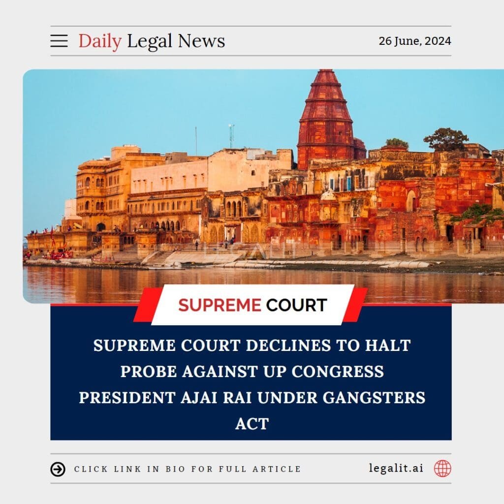 In a significant decision, the Supreme Court of India has refused to stay the investigation against Uttar Pradesh Congress President Ajai Rai under the Gangsters Act. This ruling comes amidst ongoing legal proceedings and allegations against Rai, emphasizing the judiciary’s stance on allowing investigations to proceed unhindered.