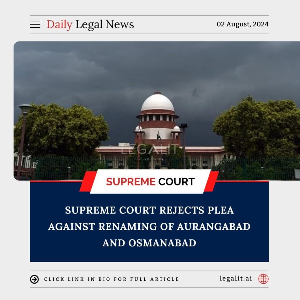 In a significant ruling, the Supreme Court of India has rejected a plea challenging the renaming of the cities Aurangabad and Osmanabad in Maharashtra. This decision upholds the Maharashtra state government’s resolution to rename these historic cities, reflecting a broader trend of revisiting and revising colonial and historical place names to better represent contemporary cultural and political sentiments.