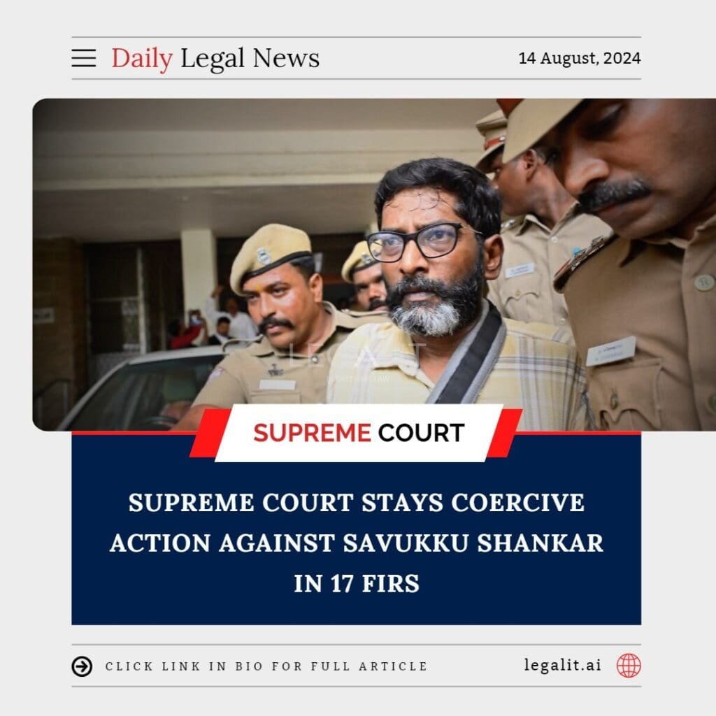 In a significant legal development, the Supreme Court of India has ordered a stay on coercive action against Savukku Shankar, a well-known political commentator and whistleblower, in connection with 17 First Information Reports (FIRs) filed against him. This decision underscores the Court’s concern about the potential misuse of the legal process to target individuals and highlights the importance of protecting the rights of those who use their platform for public commentary and whistleblowing.