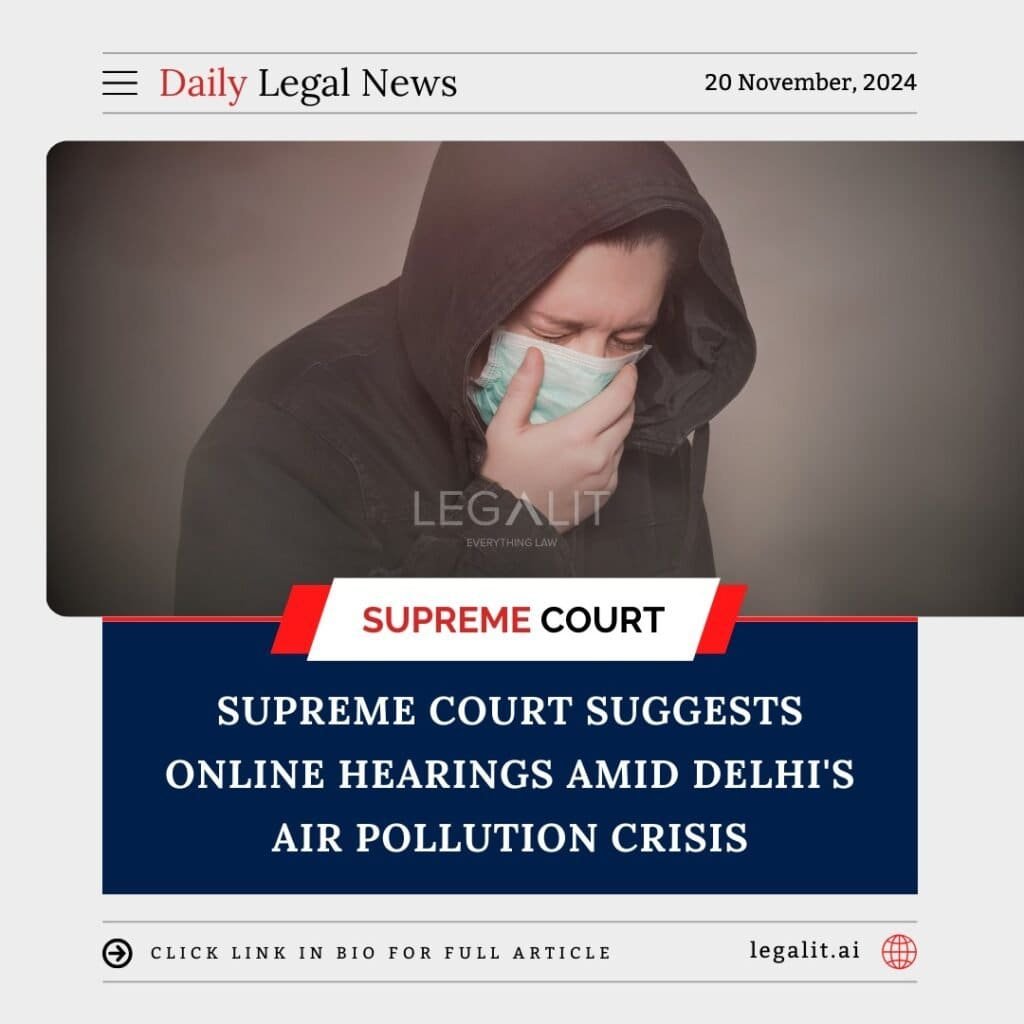 In response to the worsening air quality in Delhi, the Supreme Court of India has advised all courts in the region to consider shifting to online hearings to protect the health of lawyers, litigants, and judges. The suggestion comes as Delhi continues to grapple with severe air pollution levels, which have raised concerns about public safety.