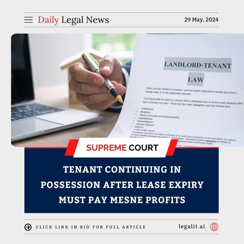 In a landmark ruling, the Supreme Court of India has held that tenants who continue to occupy property after the expiry of their lease must compensate landlords by paying “mesne profits.” This decision clarifies the legal responsibilities of tenants who remain in possession of leased property beyond their contractual terms.