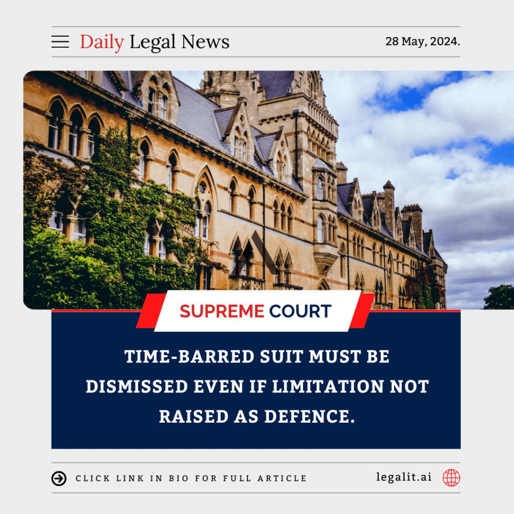 In a landmark decision, the Supreme Court of India ruled that a time-barred suit must be dismissed even if the plea of limitation is not raised as a defence by the opposing party. This ruling underscores the importance of adhering to the statutory timelines set forth in the Limitation Act, 1963.