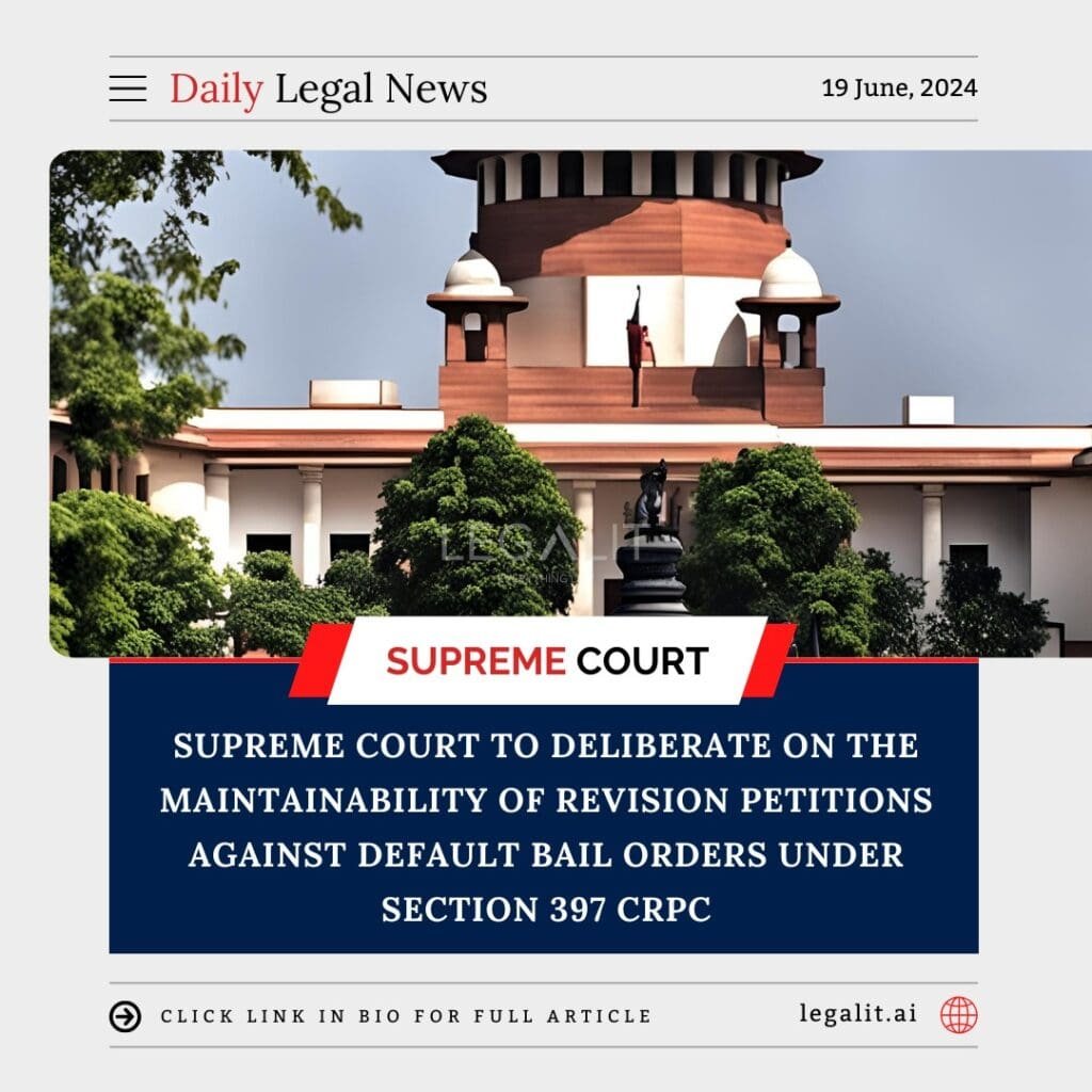 The Supreme Court of India is set to deliberate on a pivotal legal issue concerning the maintainability of revision petitions under Section 397 of the Criminal Procedure Code (CrPC) against default bail orders. This examination holds significant implications for the procedural and substantive aspects of criminal law in India, especially in the context of bail jurisprudence.