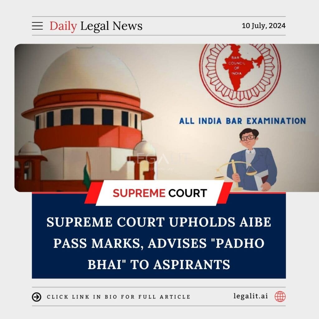 In a definitive ruling, the Supreme Court of India has refused to reduce the passing marks for the All India Bar Examination (AIBE), emphasizing the need for aspirants to meet the existing standards. This decision underscores the Court’s commitment to maintaining the quality and competence of legal professionals in the country.