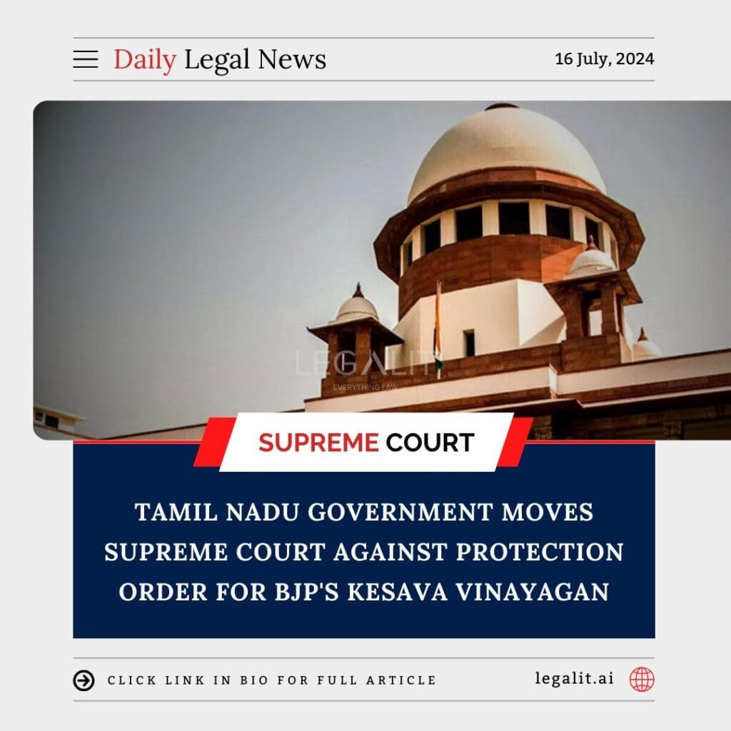 The Tamil Nadu government has approached the Supreme Court to challenge a Madras High Court order that directed the police not to “disturb” BJP leader Kesava Vinayagan. This move comes in the context of an FIR registered against Vinayagan in connection with a large cash seizure case.