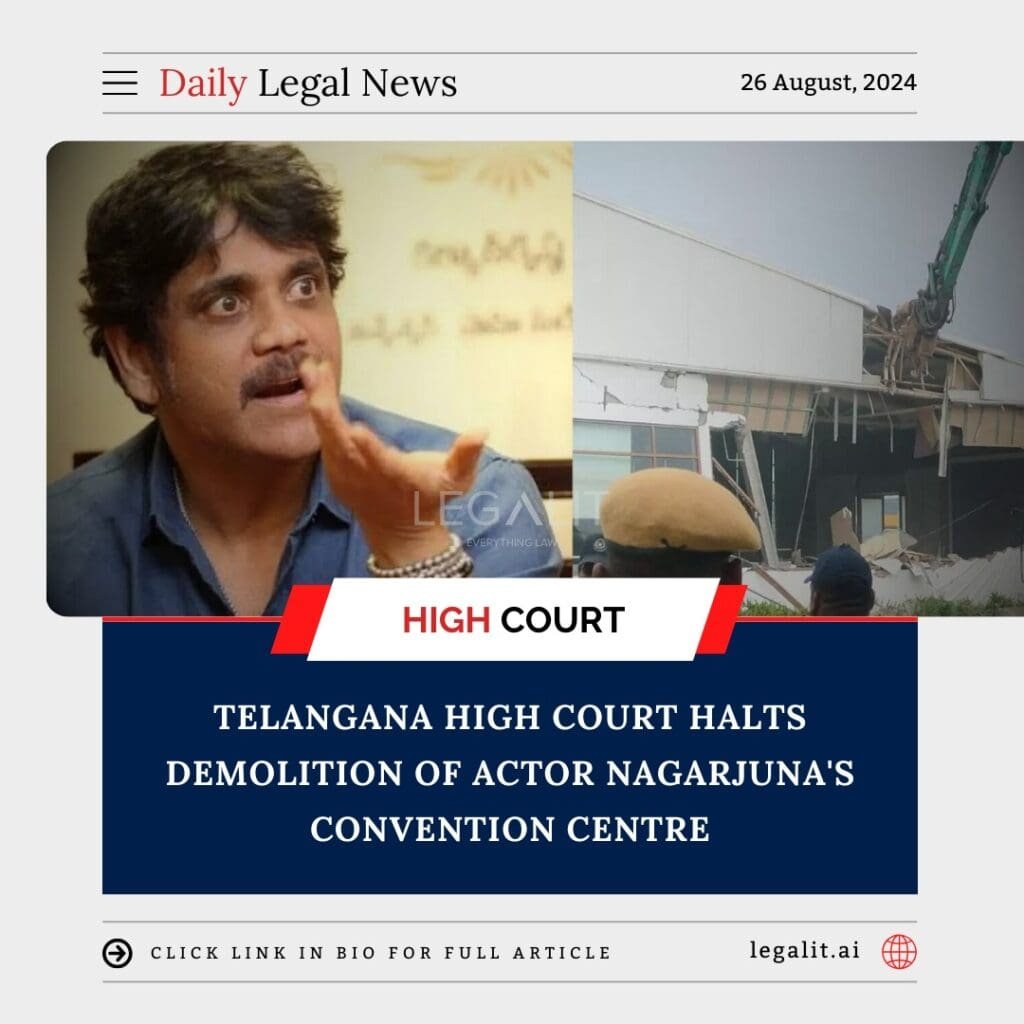 In a significant legal development, the Telangana High Court has issued a stay order on the demolition of a convention center owned by popular actor Nagarjuna. The case, which has garnered widespread public interest, revolves around the legalities of land use and the regulatory approvals required for such establishments. The court’s decision temporarily halts any action against the property, pending further examination of the legal issues involved.