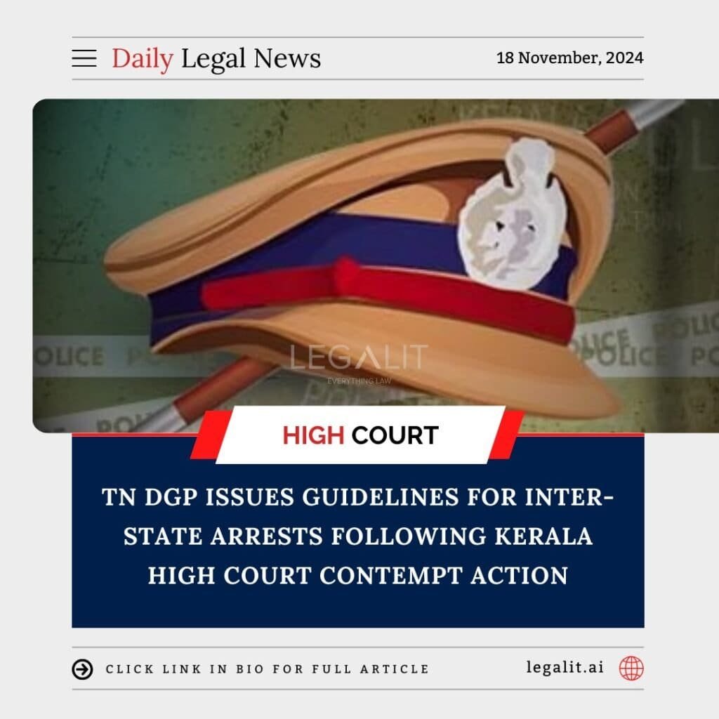 The Director General of Police (DGP) of Tamil Nadu has issued fresh guidelines for conducting inter-state arrests in compliance with the directives of the Kerala High Court, which had earlier initiated contempt proceedings against Tamil Nadu police officers for non-compliance with legal protocols during an inter-state arrest.