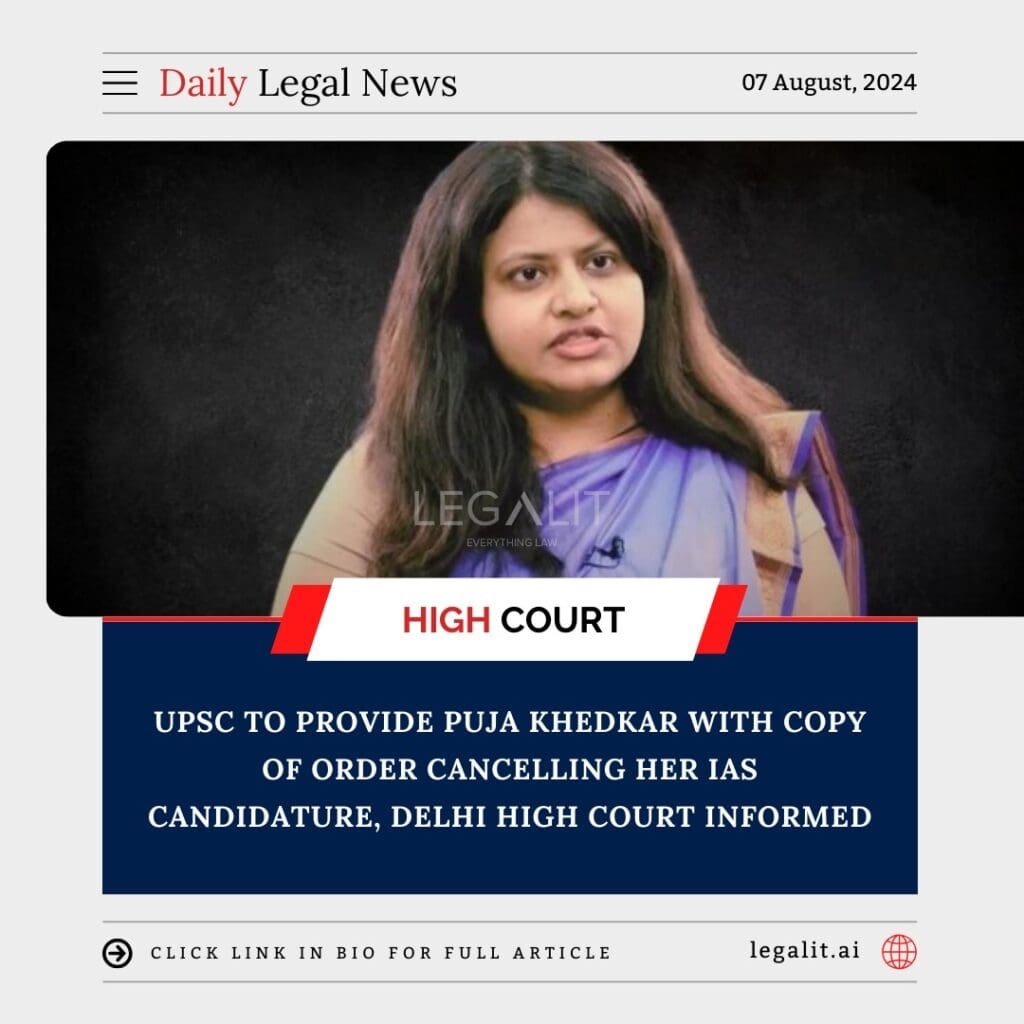 In a recent development, the Union Public Service Commission (UPSC) has informed the Delhi High Court that it will provide Puja Khedkar with a copy of the order canceling her IAS (Indian Administrative Service) candidature. This decision comes as part of an ongoing legal dispute concerning the cancellation of Khedkar’s candidature and underscores the importance of transparency and due process in administrative decisions.